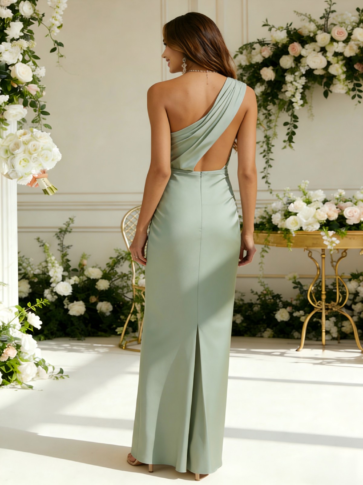 Satin One Shoulder Pleated Mermaid Bridesmaid Dresses for Women