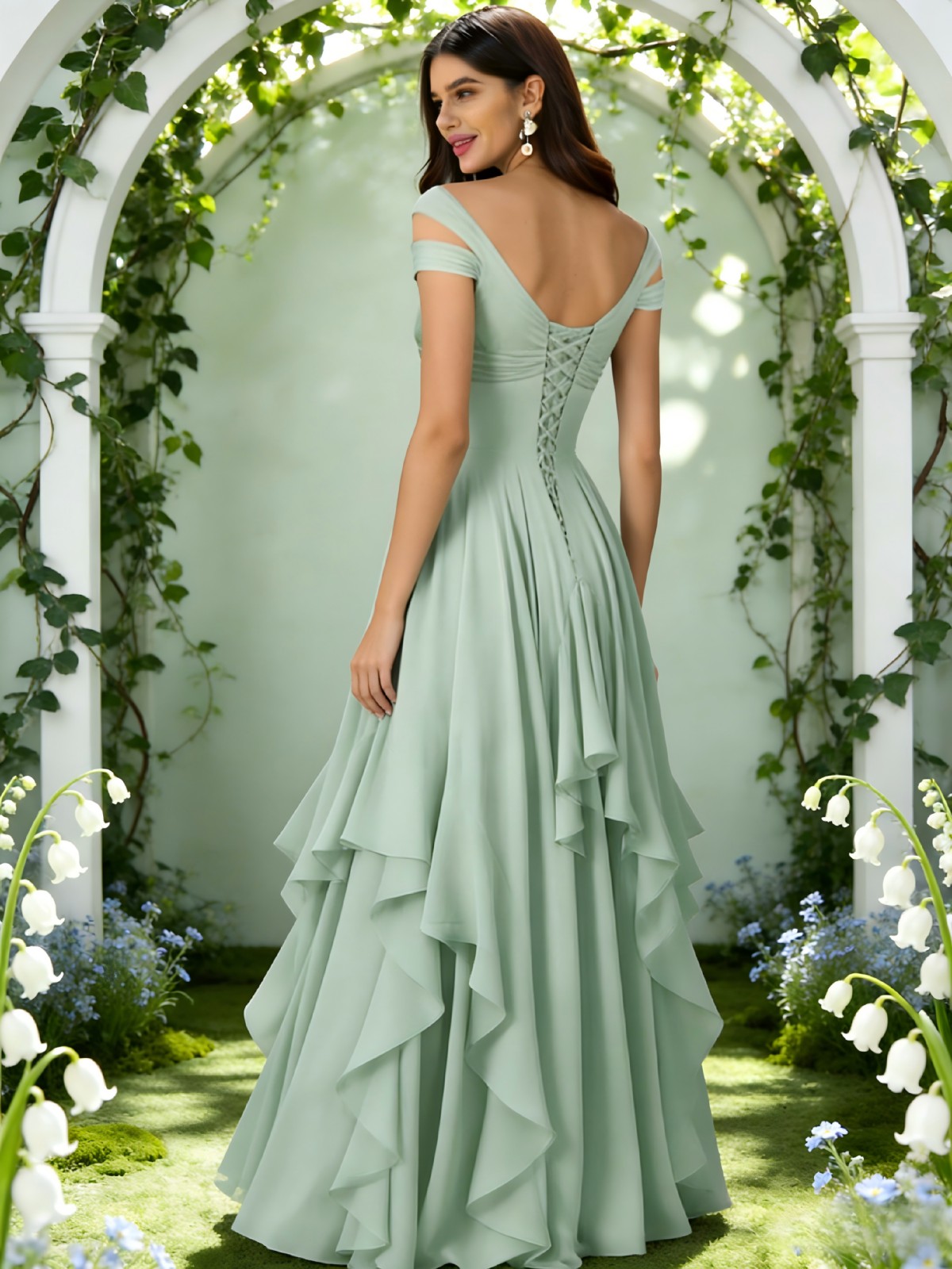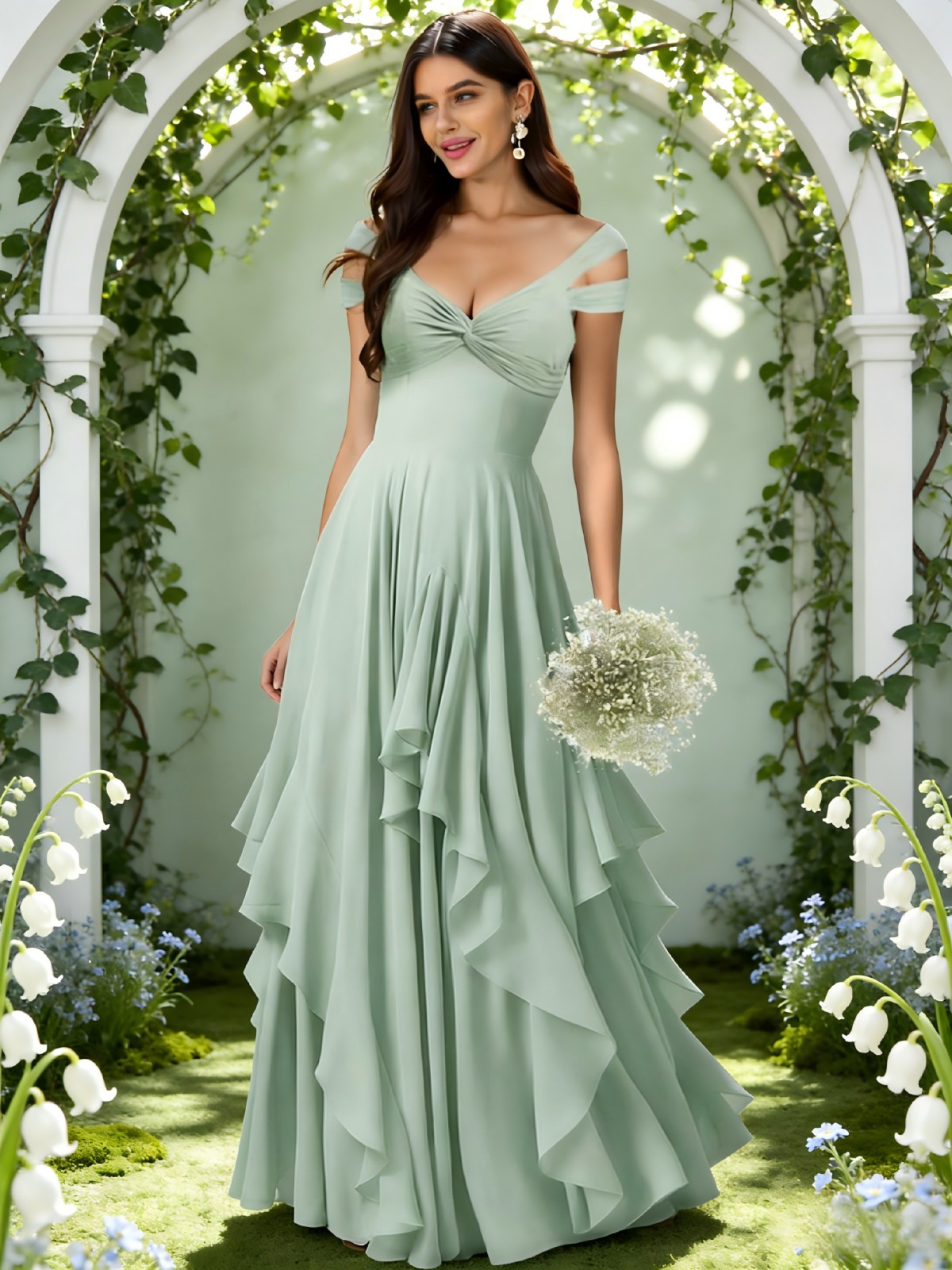ACE1140004 Chiffon Off the Shoulder Ruffles Pleated Bridesmaid Dresses